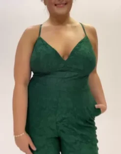 If you’re looking for a stylish alternative to a dress, suit yourself! This luxe lace jumpsuit features a sexy V-neckline, straight leg pants, and handy pockets.