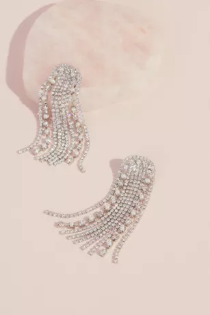 Channel your inner Old Hollywood starlet in these glamorous fringe earrings, featuring strands of shimmering crystals.