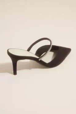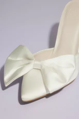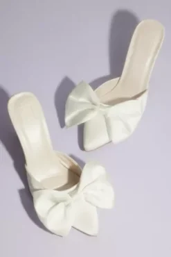 These chic satin stiletto mules are topped with a statement bow for a fashionista flourish.