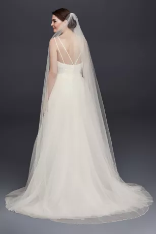 This long, one-tier veil is the perfect complement to any gown: just think of the beautiful image that will be created when the light, flowing fabric catches the wind.