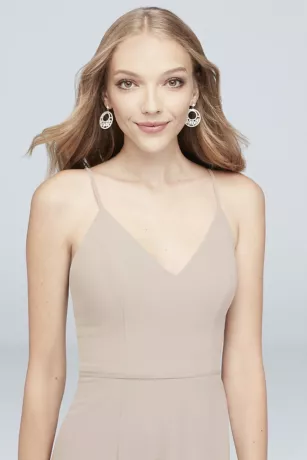 Simple and classic, this spaghetti strap, V-neck chiffon bridesmaid dress is a blank slate waiting for the personal touch of your favorite shoes, jewelry, wraps, and more.