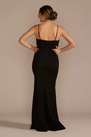 Show off your best assets in this crepe sheath dress designed with a delicately draped skirt for a flattering fit. A flirty keyhole detail at the bodice adds interest, while the thigh-high skirt slit will turn heads for all the right reasons.