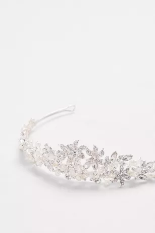 The perfect combination of regal and romantic, this crystal- and pearl-encrusted floral tiara finishes your wedding day look with megawatt sparkle.