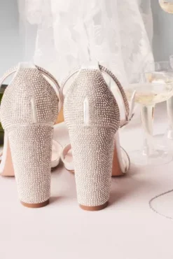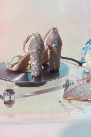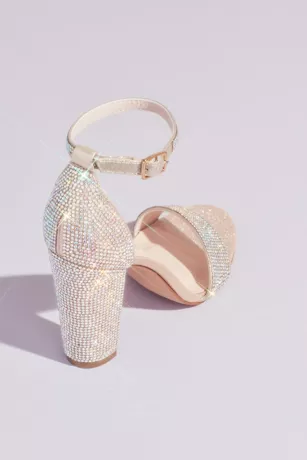 Rows of sparkling crystals coat the ankle strap, vamp, and block heel of these comfy-cool sandals. Shimmering piping lines the instep and toe pad.