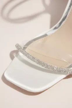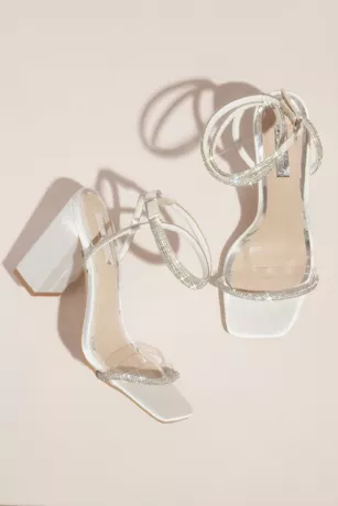 These block heel sandals feature crystal-embellished straps that wrap around ankles for a sexy touch.