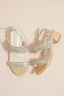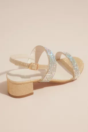 Make the flower girl sparkle with twinkle toes in these glittery block heel sandals topped with crystal embellishments.