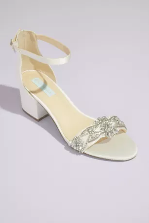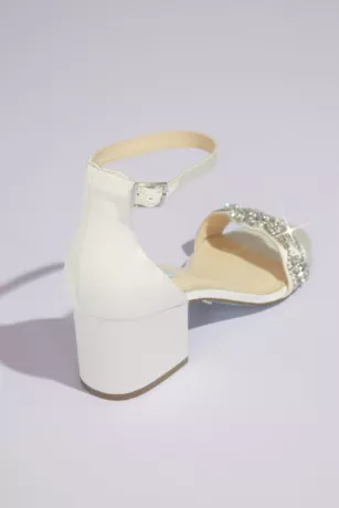 These satin block heel sandals feature crystal-encrusted straps across the toes for a touch of sparkle.