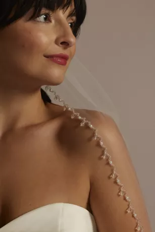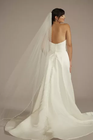 This classic tulle chapel-length veil curates the bridal moment of your dreams, edged with dangling beads to make your whole look shine even brighter.