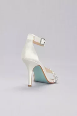 A richly embellished vamp and slim ankle strap make this high heel sandal from Betsey Johnson the perfect finish to any evening look.
