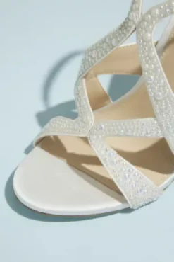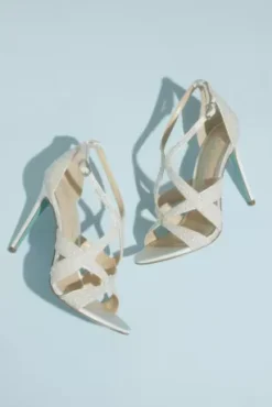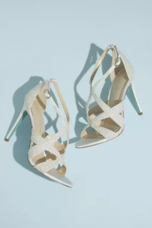 Shimmer, shine, and strut your stuff in these strappy stiletto sandals covered in sparkling embellishments.