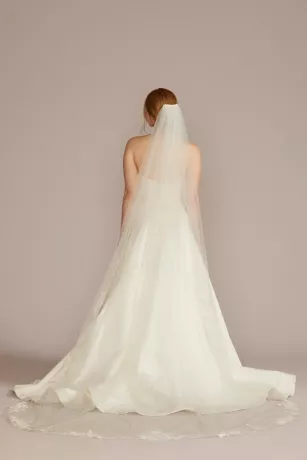 Detailed with luxe embroidered appliques and three different types of lace, this elegant tulle veil is truly a showpiece.