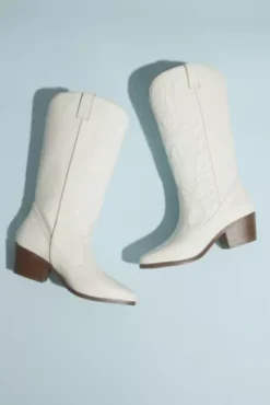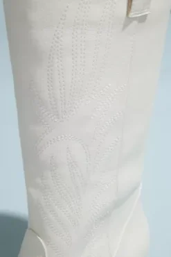 Lasso your inner cowgirl in these mid-calf faux leather Western boots, finished with block heels and decorative top stitching.