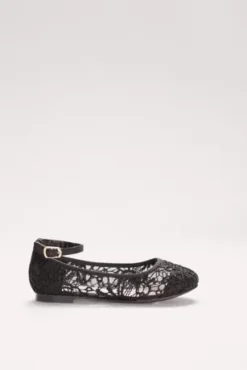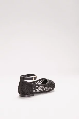 A sweet shoe option for flower girls, these crochet ballet flats feature sweet illusion lace and an adjustable ankle strap.
