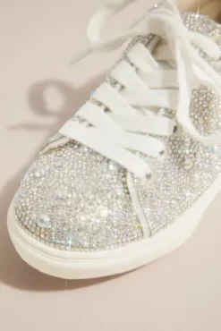 These twinkly platform sneakers are sure to become every flower girl’s ultimate boogie shoes. Topped with crystals and a chunky sole, they shine bright on the dance floor.
