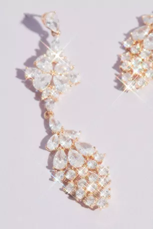 These sparkling statement earrings are sure to turn heads. A burst formed from teardrop and marquise-cut crystals anchors a dramatic oval-shaped crystal drop.