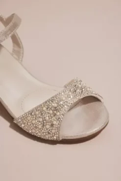 Girls Pearl Beaded Metallic Low-Heel Sandals