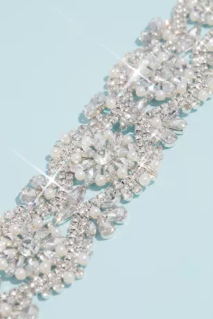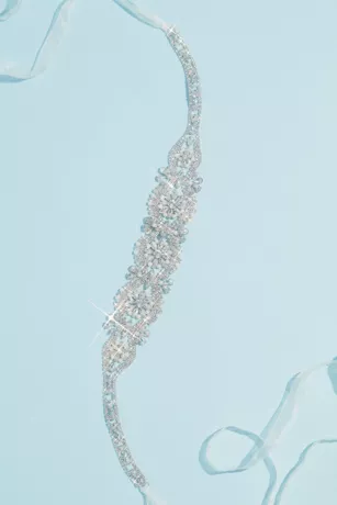 The perfect finishing touch for your wedding dress, this floral sash features glittering crystals and luminous pearls.