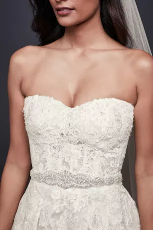 Intricately beaded scallops taper in size as they spread from the center of this satin ribbon sash.