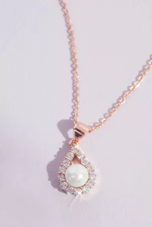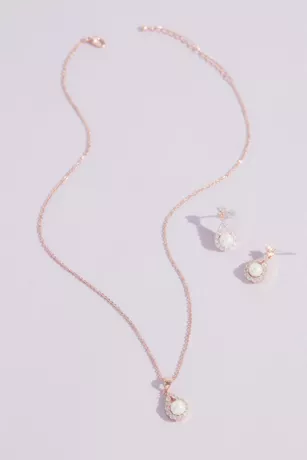 Halos of shimmering crystals add extra sparkle and glam to the lustrous faux pearls in this timeless necklace and earring set.