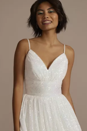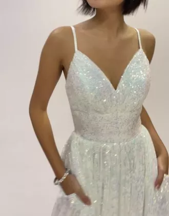 Designed with countless sparkling sequins and a full skirt made for twirling, this glamorous ball gown brings next-level sparkle and shine to prom night.