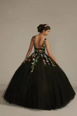 A day as big as your quinceanera deserves an even bigger dress! This lace appliqued quince dress delivers with a full ball gown skirt. Stunning details like a lace-up back and delicate cap sleeves beg to be twirled around the dance floor as you make your passage from girlhood to womanhood.