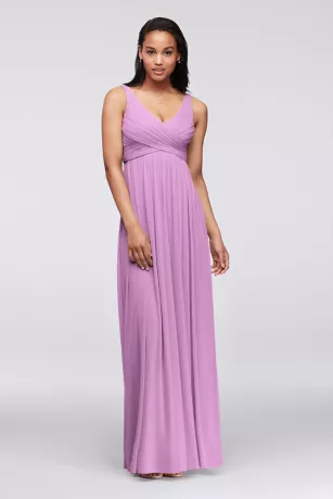 - Sleeveless tank pleated bodice with ultra-feminine v-neckline features swooping cowl back detail.