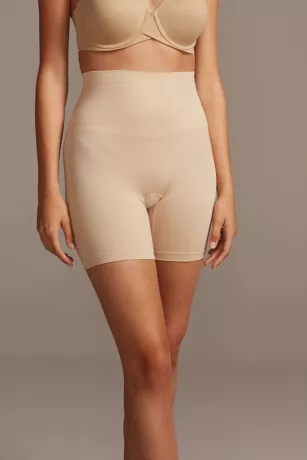 These upper-thigh shapewear shorts add smoothing control to the legs, bottom, and midsection, allowing you to feel your most confident in knee-length dresses and skirts.