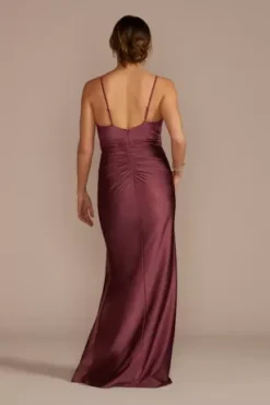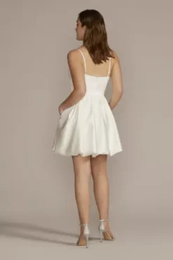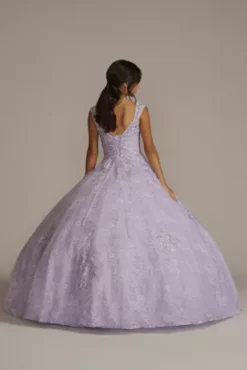 Soft and feminine, this tea length A-line dress features a beautifully embroidered bodice, with detailing over the sweetheart neckline and off-the-shoulder sleeves. Glossy satin fabric makes this a polished option for any mother of the bride or groom.