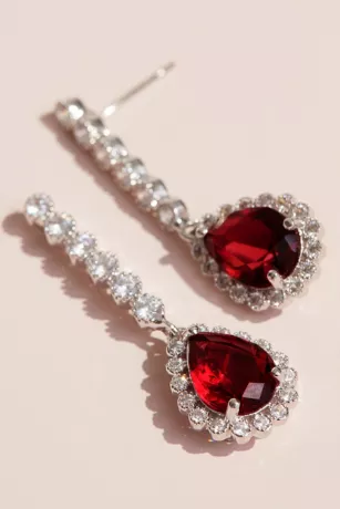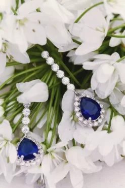 Timeless earrings featuring brilliantly blue pear-shaped cubic zirconia dangling from strands of twinkling crystals.