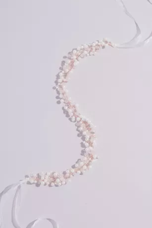 Pearl And Crystal Hair Wreath With Organza Ribbon