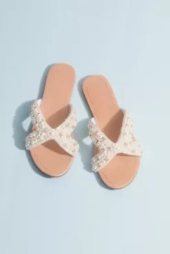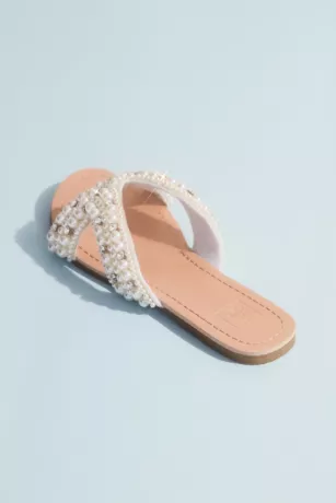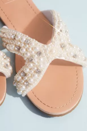 Easy slip-ons for the bride that don’t skimp on style! They’re fully beaded with lovely pearls to add a bit of glam to every wedding-event outfit.