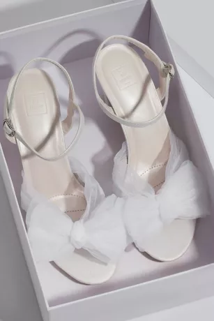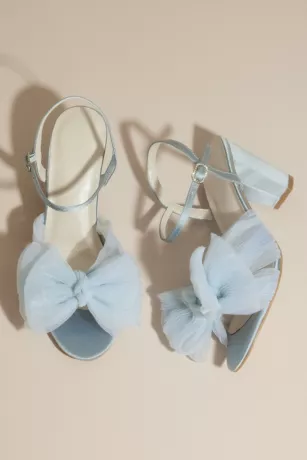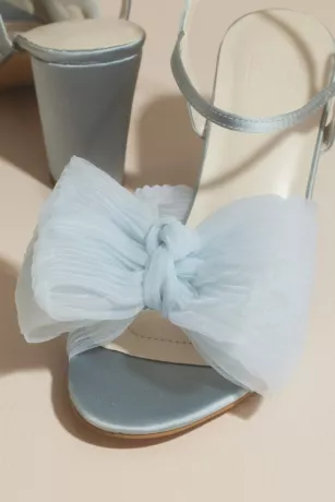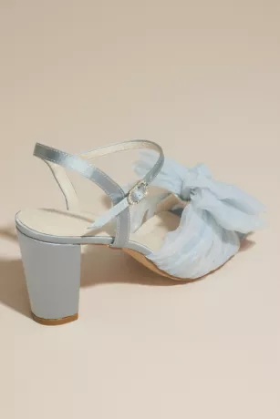 A whimsical treat for your feet, these block-heel sandals amp up the charm with a pleated, poufy chiffon bow at the toe and a sparkly buckle at the ankle.