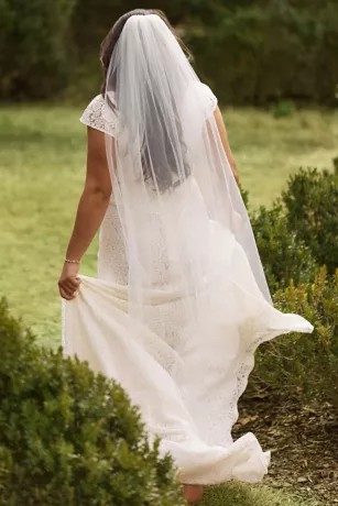 Made from recycled nylon, this tulle mid-length veil floats down the aisle with a classically romantic look.