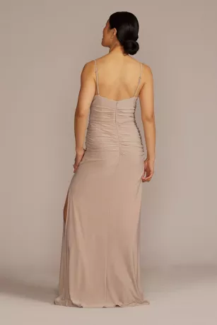 The soft jersey fabric on this ruched cowl neck bridesmaid dress highlights your figure and feels effortlessly comfy during all-day partying.