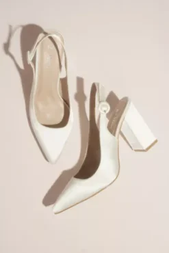 An instant classic, these satin slingbacks feature a pointy toe and a block heel for walking tall.