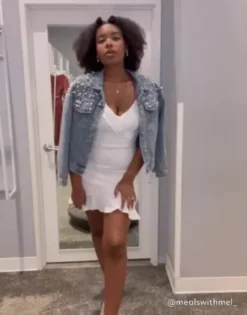 Made for graduation, this short and sweet sheath dress proves you’ve earned a degree in style! Stretch crepe fabric creates a flawless fit, and ruffles at the neck and asymmetrical hemline add drama.