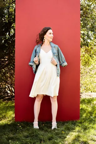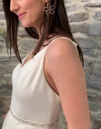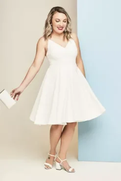 Ultra-flattering and oh-so comfortable, this pocketed stretch fit-and-flare style can be dressed up or down with ease. Pair it with a strappy heel for your rehearsal dinner or with plain white sneakers and a jean jacket for your day-after brunch or bridal shower.