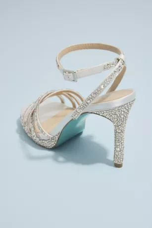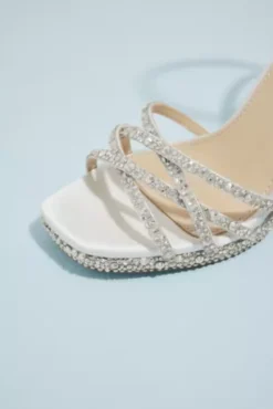 A show-stopping bridal or special event heel, covered in dazzling crystals from the slim ankle wrap to the crisscrossing toe straps.