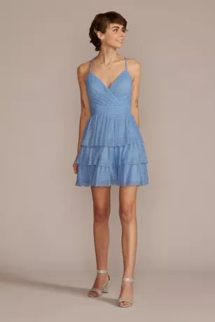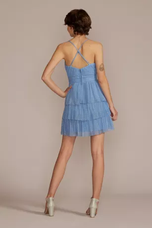 Twirling is not just a want in this mini dress, it’s a need! Features three tiers of delicate ruffles, a darling v-neck surplice neckline, and strappy crisscross back.